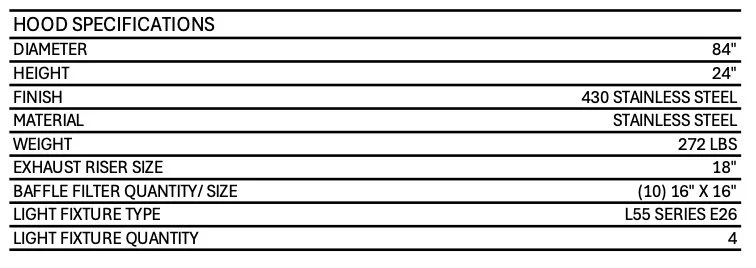 Exhaust Flow Rates: Superior exhaust flow rates. A 7' Hood can operate at 457 CFM/ft or 3199 total CFM for 600 degree appliances.