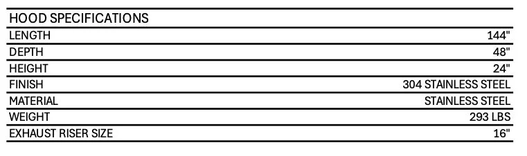 Exhaust Flow Rates: Superior exhaust flow rates. A 12' Hood can operate at 150 CFM/ft or 1800 total CFM for 700 degree appliances.