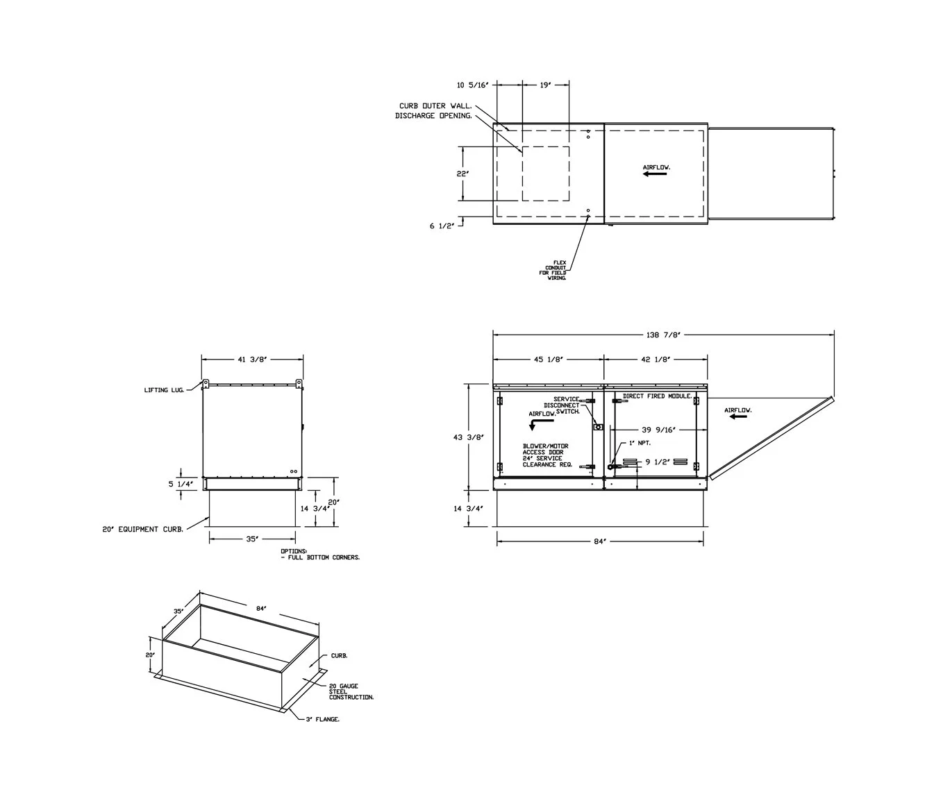 As all fans are custom built, no returns or exchanges are accepted. Horizontal discharge units are available upon request. Roof curb is included.